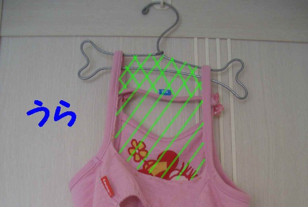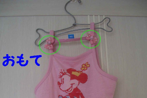 そこで〇の部分の肩紐を詰めて、リボンで隠しました。