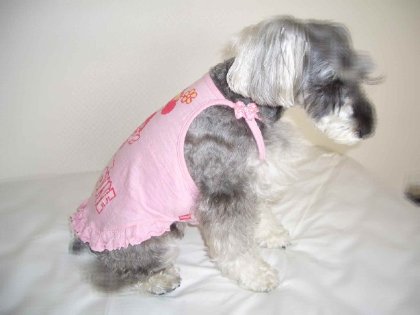 飼い主さんがお洋服着せるのが好きで年中着せているからと、