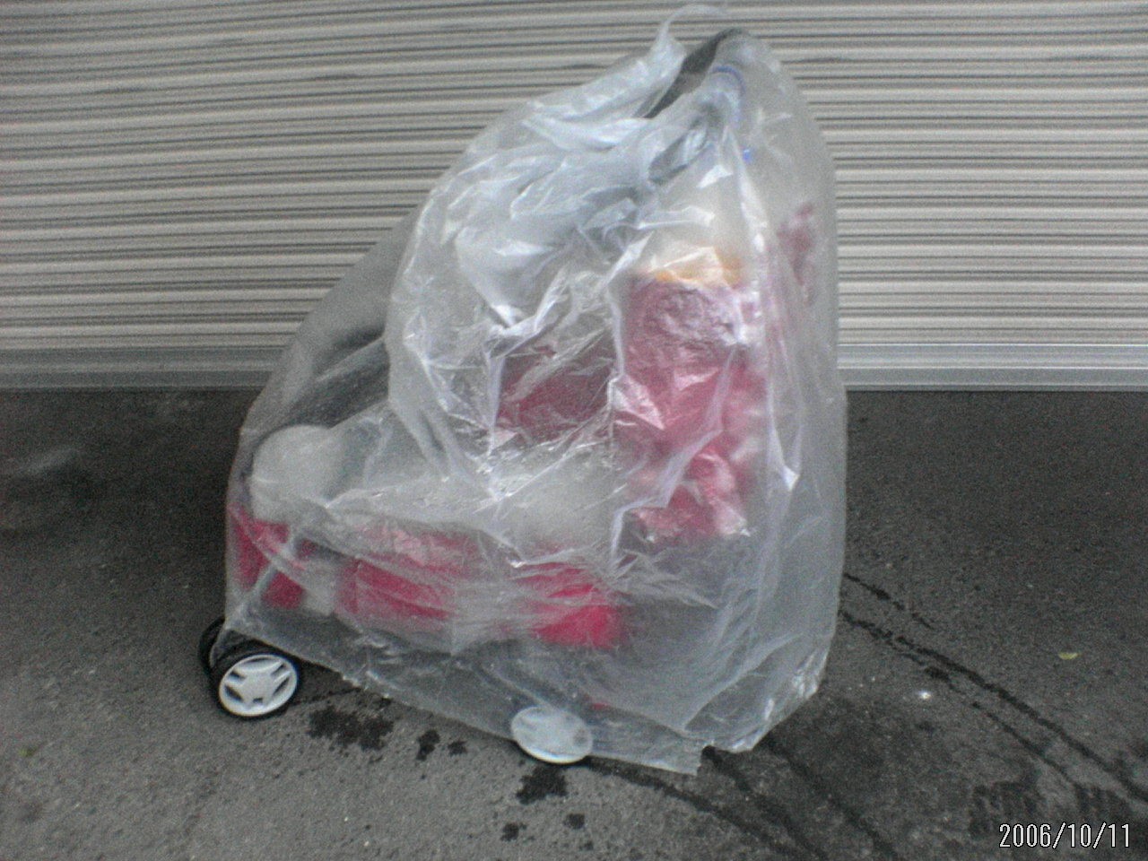 雨よけビニールかぶせたカート。
