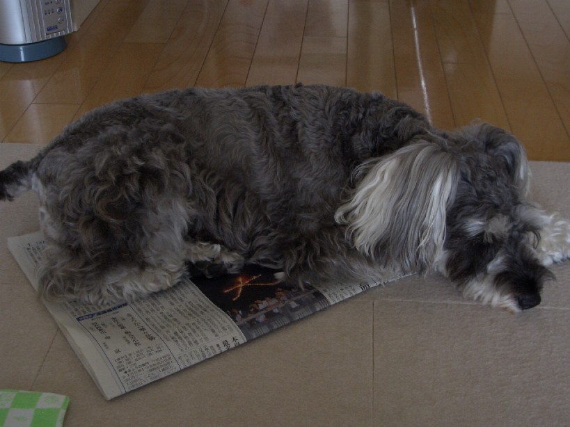 最近ママは新聞を広げたまま床に置いております。