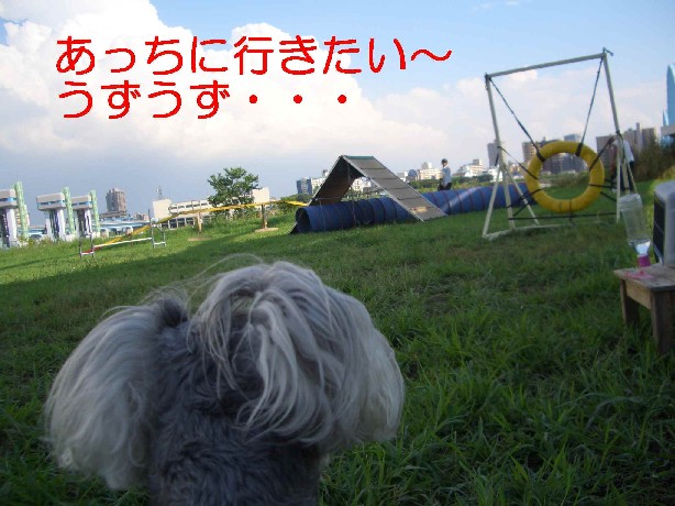 アジの練習をしているワンちゃんたちのすぐ横での訓練だったので
